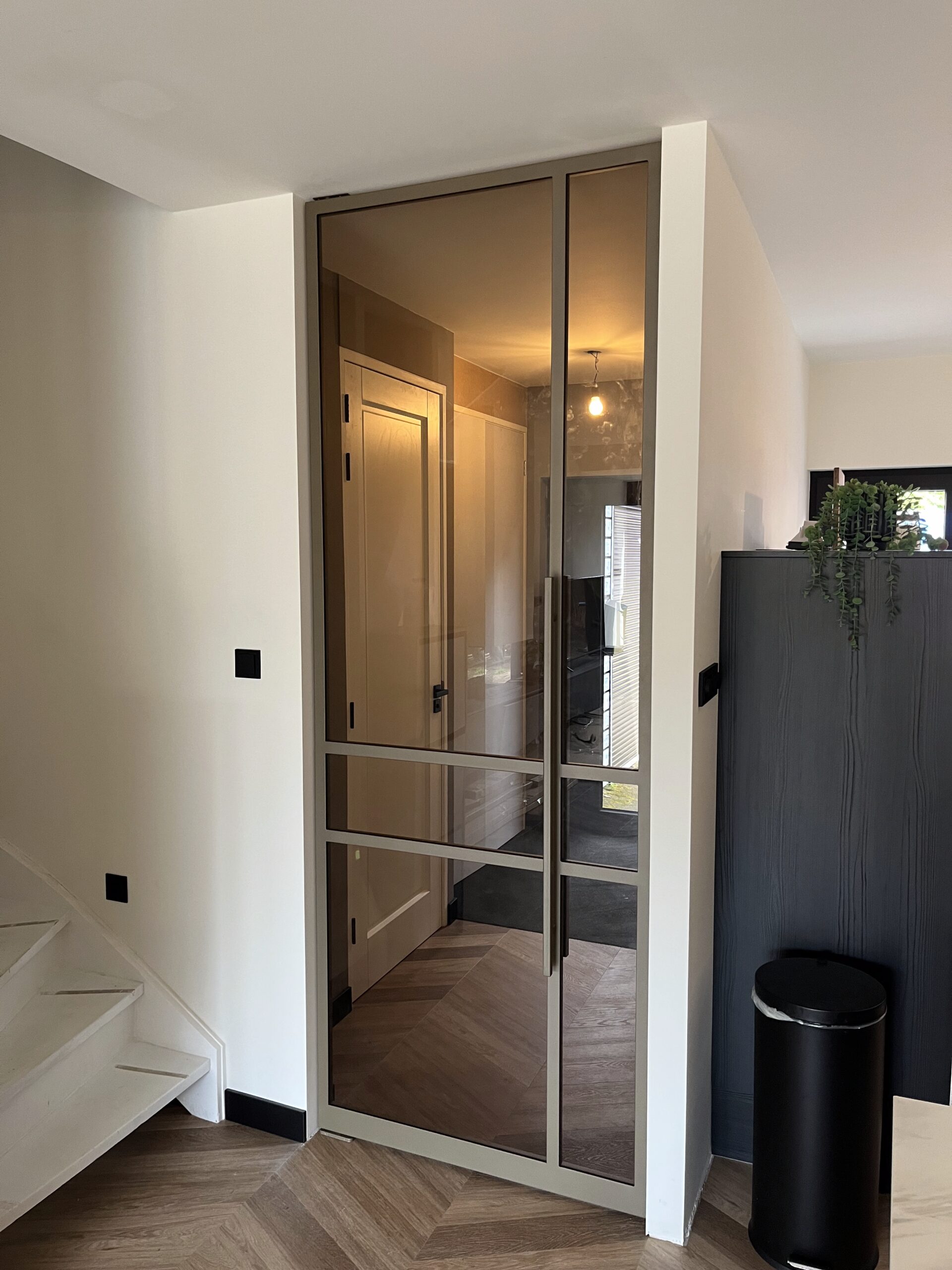 Met staal als ons favoriete materiaal, sterk, tijdloos en stijlvol, besloten we ons te specialiseren in op maat gemaakte stalen deuren die een interieur laten stralen. Onze deuren worden vervaardigd met slanke profielen, waardoor het glas de hoofdrol krijgt en een lichte, ruimtelijke sfeer in elke ruimte ontstaat. Een deur die niet alleen open en dicht gaat, maar een statement maakt en een verhaal vertelt.
