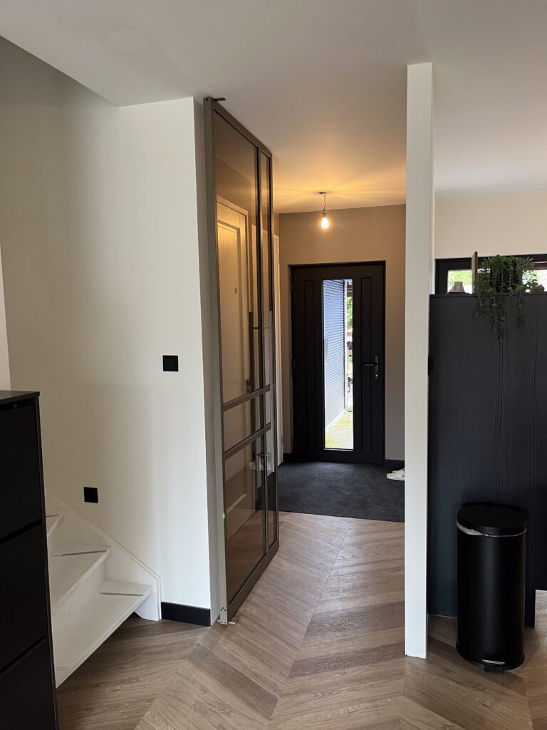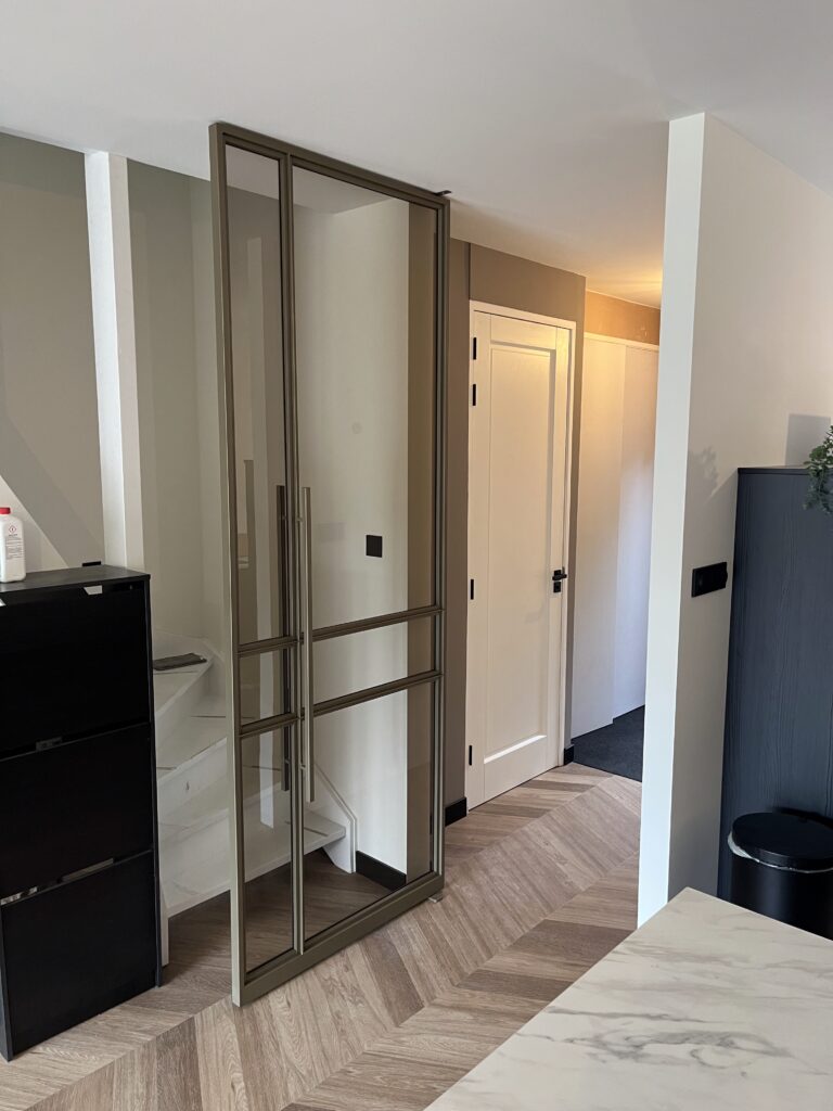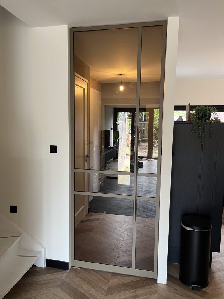 Voor een klant in Wijchen hebben wij een stalen taatsdeur op maat vervaardigd en geplaatst tussen de gang en de woonkamer. Deze op maat gemaakte deur loopt volledig van vloer tot plafond, waardoor de ruimte een extra ruimtelijke uitstraling krijgt en er nog meer natuurlijke lichtinval ontstaat. Een stalen taatsdeur is daarmee niet alleen een stijlvolle toevoeging, maar ook een praktische keuze voor een open en lichte woonomgeving.